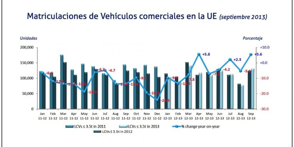 La matriculación de nuevos vehículos comerciales creció un 6,1% en la Unión Europea, lo que supone un total de 160.038 unidades en el mes de septiembre, que contó con un día laboral más en toda la región. Sin embargo, este dato no cambia la tendencia a la baja del mercado de vehículos comerciales en lo que va de año.