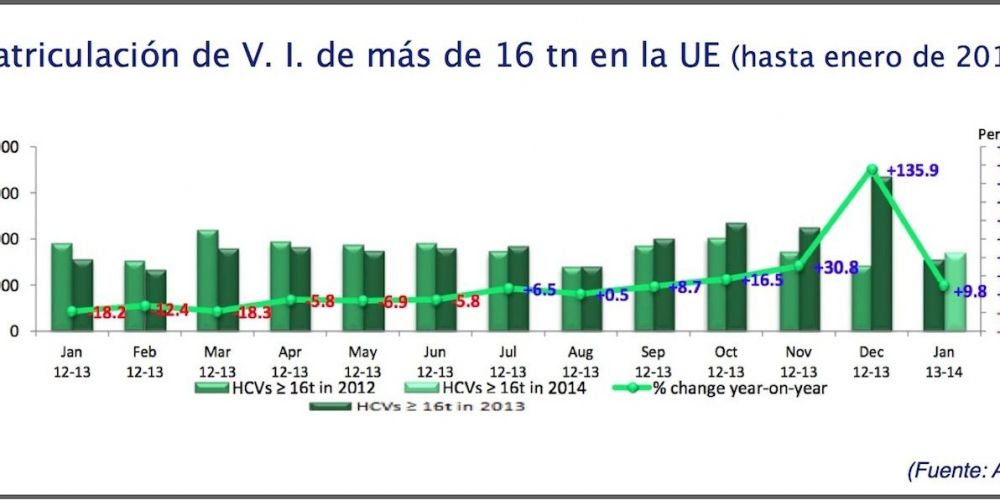 Las matriculaciones de vehículos industriales y autobuses en Europa han alcanzado las 132.503 unidades durante el pasado mes de enero, lo que representa un incremento del 4,7% respecto a las 126.555 unidades entregadas en el mismo mes de 2013, según datos de la Asociación de Constructores Europeos de Automóviles (Acea).