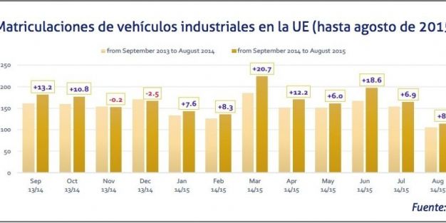Las matriculaciones de vehículos industriales y autobuses en el mercado europeo se han situado en 1.308.788 de unidades durante los ocho primeros meses del 2015, lo que supone una subida del 11,8%, según datos de la Asociación de Constructores Europeos de Automóviles, Acea. España (+37%), Reino Unido (+19%), Italia (+10,3%), y Alemania (+2,4%) y Francia (+0,8%) han visto incrementarse el número de matriculaciones.