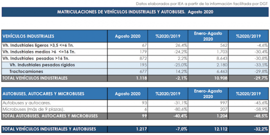 En el octavo mes de 2020, las matriculaciones de vehículos industriales, sin contar los datos de autobuses y autocares, han caído un 2,1% hasta las 1.118 unidades, según los datos registrados por Anfac.
