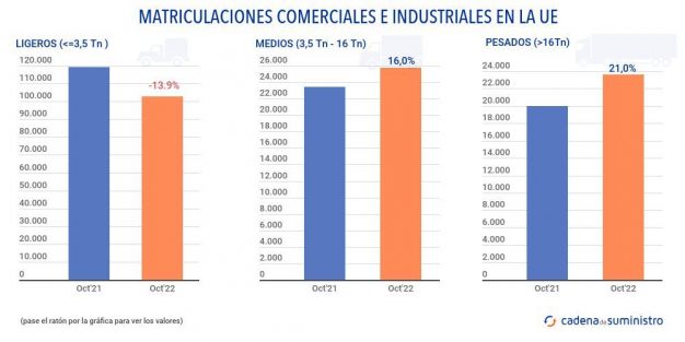 Esto se debe a la caída en las matriculaciones de furgonetas, que representan la gran mayoría de las ventas. Por el contrario, los segmentos de camiones se comportaron mejor que en octubre de 2021.