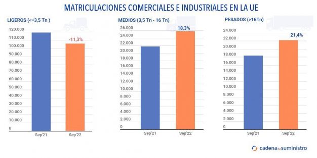 En el segmento de los vehículos industriales de más de 3,5 toneladas, la demanda ha crecido un 18,3% en el noveno mes. En España se ha registrado un incremento del 22,8% en Alemania del 11,9%, y en Francia e Italia del 3%.