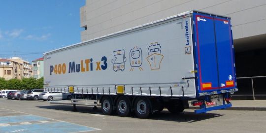 El fabricante ha mostrado las opciones de transporte intermodal que ofrece con la gama de vehículos P400 Multi x3, que abarca lonas, frigos y cajas móviles.