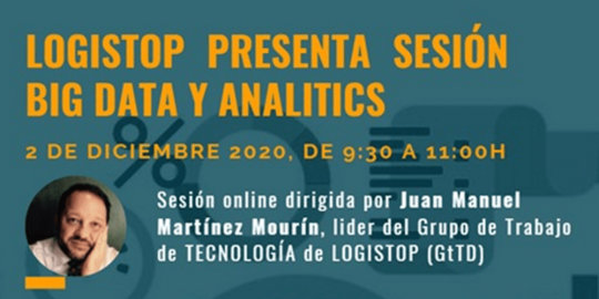 Logistop organiza el día 2 de diciembre un webinar centrado en 'Big Data y Analytics', que estará dirigido por Juan Manuel Martínez Mourín, actual responsable del Grupo de Trabajo de Tecnología de esta plataforma.