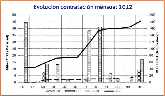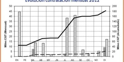 En total este año se han conseguido 39 nuevos contratos, tres nacionales y 36 de exportación, un importante crecimiento ya que el año anterior solo se consiguieron siete. Mientras que en 2010 se consiguieron 25 contratos y 13 en 2009.
