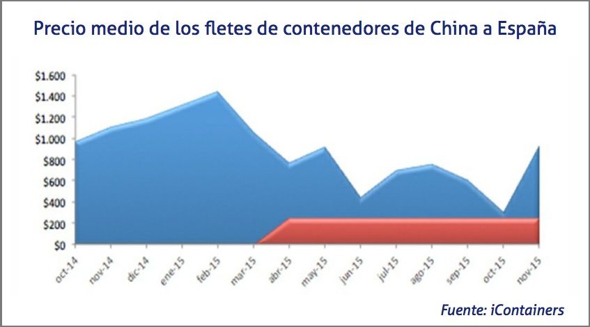 Informe mensual de precios de transporte marítimo de octubre de 2015elaborado por iContainers, que se puede descargar en este enlace (disponible en formato pdf, de 3 páginas, 360 Kb).