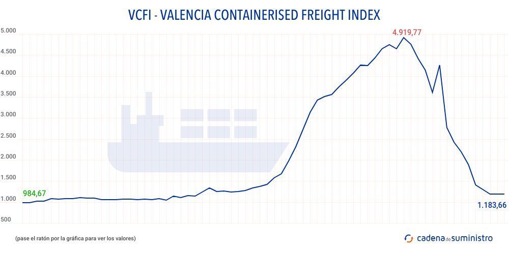 El Valencia Containerised Freight Index, VCFI, ha tendido a estabilizarse durante el pasado mes de octubre, pero acumula catorce meses seguidos de descensos.