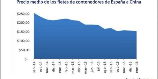 El presente ejercicio 2016 ha comenzado con un significativo descenso en el precio de los fletes enviados desde España a la costa este de los Estados Unidos. En este mes de enero, el flete desde Barcelona, Madrid o Valencia hacia Nueva York o Chicago ha llegado a cotizar por debajo de los 950 dólares/TEU, frente a los 1.100 dólares/TEU con los que cerró 2015.