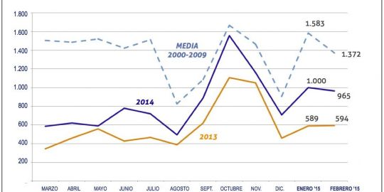 En el acumulado de los dos primeros meses, las 1.965 unidades matriculadas suponen ya un incremento del 66% respecto de las 1.183 unidades del año 2014.