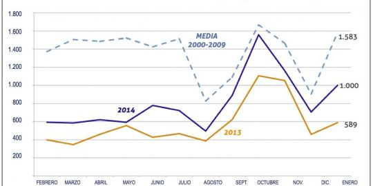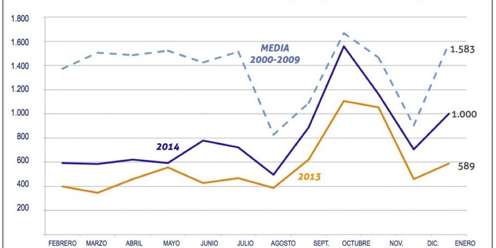 El año 2014 finalizó con 9.284 unidades matriculadas, lo que ha supuesto un incremento del 36% respecto de las 6.833 unidades del año anterior 2013.