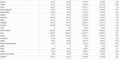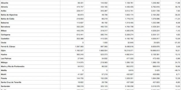 Además, aunque los puertos de Algeciras y Almería no tienen un peso tan importante como los anteriores en el total del sistema portuario español, también son destacables los aumentos del 30,78% en la instalación almeriense, donde se han manipulado 5.762.816 tn, y del 35% en el principal puerto gaditano, que ha alcanzado las 2.164.282 tn.