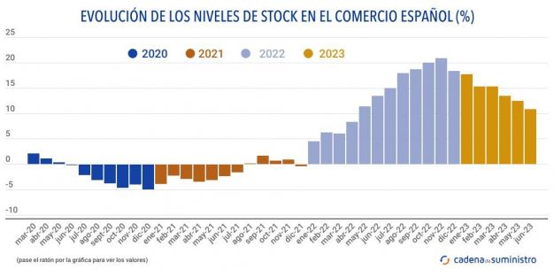 Los niveles de los stocks comerciales se mantienen elevados en el segundo trimestre de 2023, aunque crecen a menor ritmo que en los tres primeros meses del año.