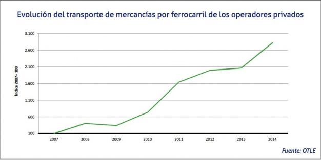 En este contexto, según los datos de crecimiento del operador público y los privados, estos últimos han absorbido casi en su totalidad el crecimiento del 33,5% de las mercancías entre 2009 y 2014.
