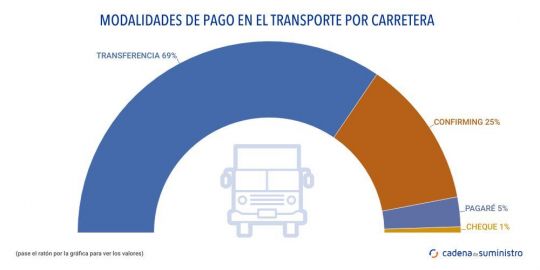 En cuanto a los medios de pago utilizados más habitualmente para el pago de los servicios de transporte, continúan siendo por este orden, la trasferencia (69%), seguido del confirming (25%), el pagaré (5%) y el cheque (<1%).