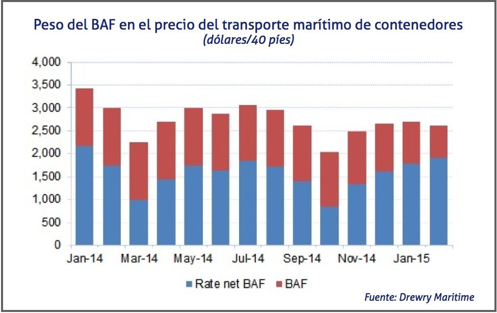 La disminución del recargo BAF constituye una prueba fehaciente de que los transportistas están transmitiendo a los cargadores la reducción experimentada en el precio del petróleo en el segundo semestre de 2014.