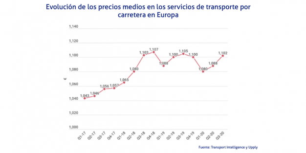 En concreto, el índice que elaboran cada tres meses Transport Intelligence y Upply Q3 señala un repunte de un 1,2% durante el tercer trimestre, hasta colocarse en los 1.102 euros.