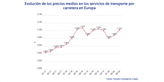 Tras dos trimestres en que se han dejado sentir los efectos de la crisis sanitaria, los precios de los servicios de transporte de mercancías en Europa parecen remontar en el tercer cuarto de 2020 hasta situarse cerca de los que se registraban hace un año.