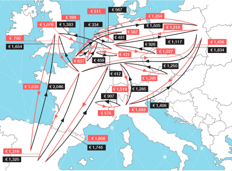 Sin embargo, en las otras rutas comerciales importantes de Europa, incluidas Madrid-París y Lille-Duisburgo, el panorama era desigual.