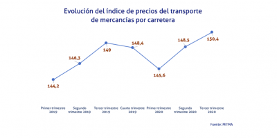 Al mismo tiempo, el registro trimestral de los precios en el transporte de mercancías por carretera en el tercer cuarto de 2020 también marca un ascenso de un 1,26% con relación al segundo trimestre de este mismo ejercicio.