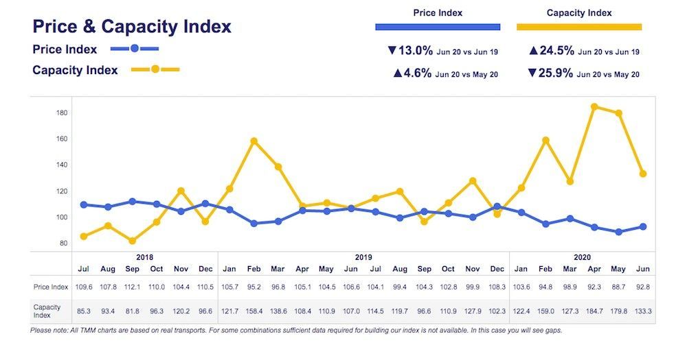 Así pues, los precios del transporte el Viejo Continente se han colocado en el sexto mes del ejercicio en un índice de 92,75 puntos, cifra que es un 13% inferior a la de hace un año.