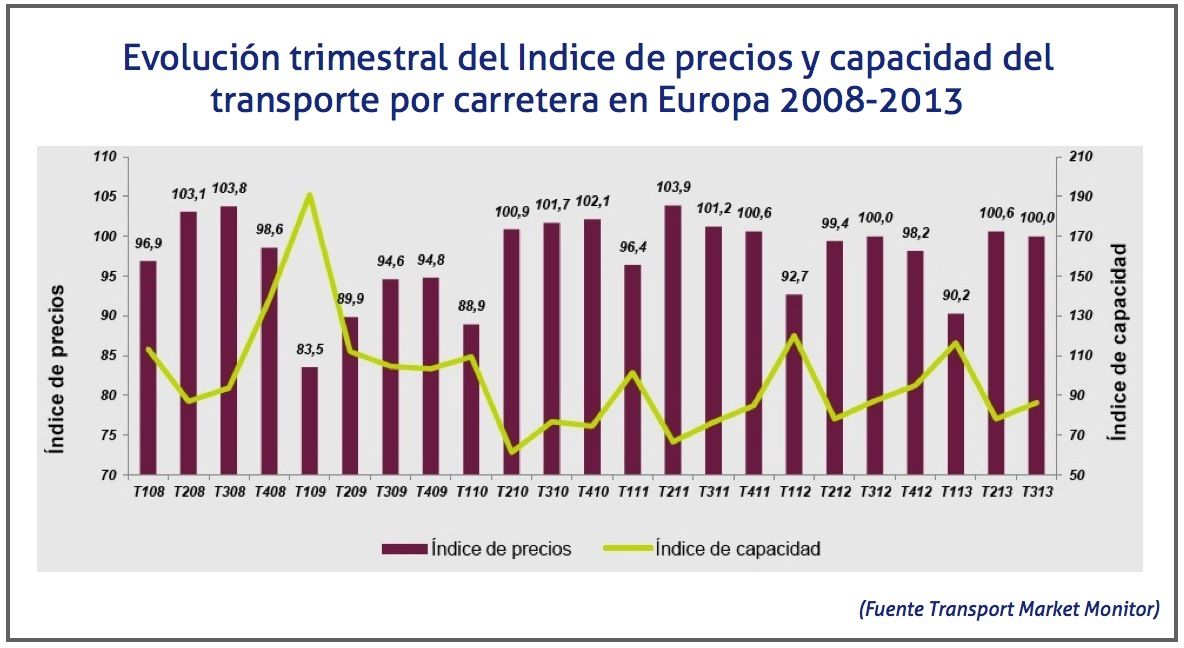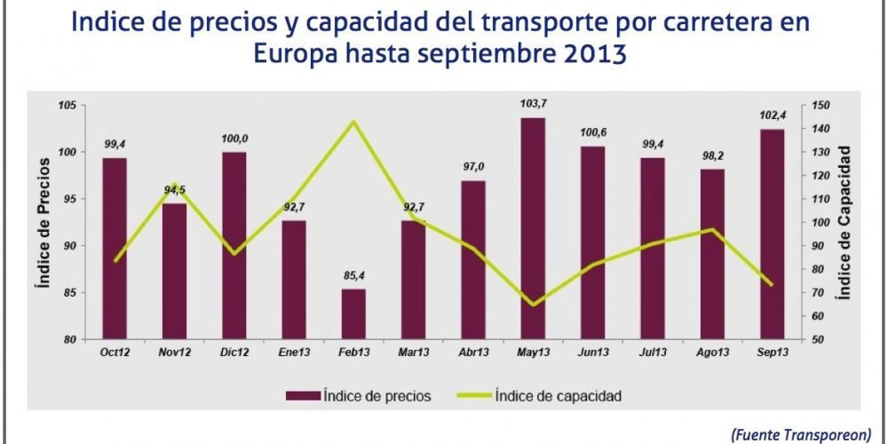 Dos factores que afectan al precio del transporte, como son el índice del gasóleo, que subió a 105,9, un 2% más que en el pasado trimestre, y el índice de capacidad, que entre el segundo y el tercer trimestre de 2013 se ha visto incrementado en un 10,3%.