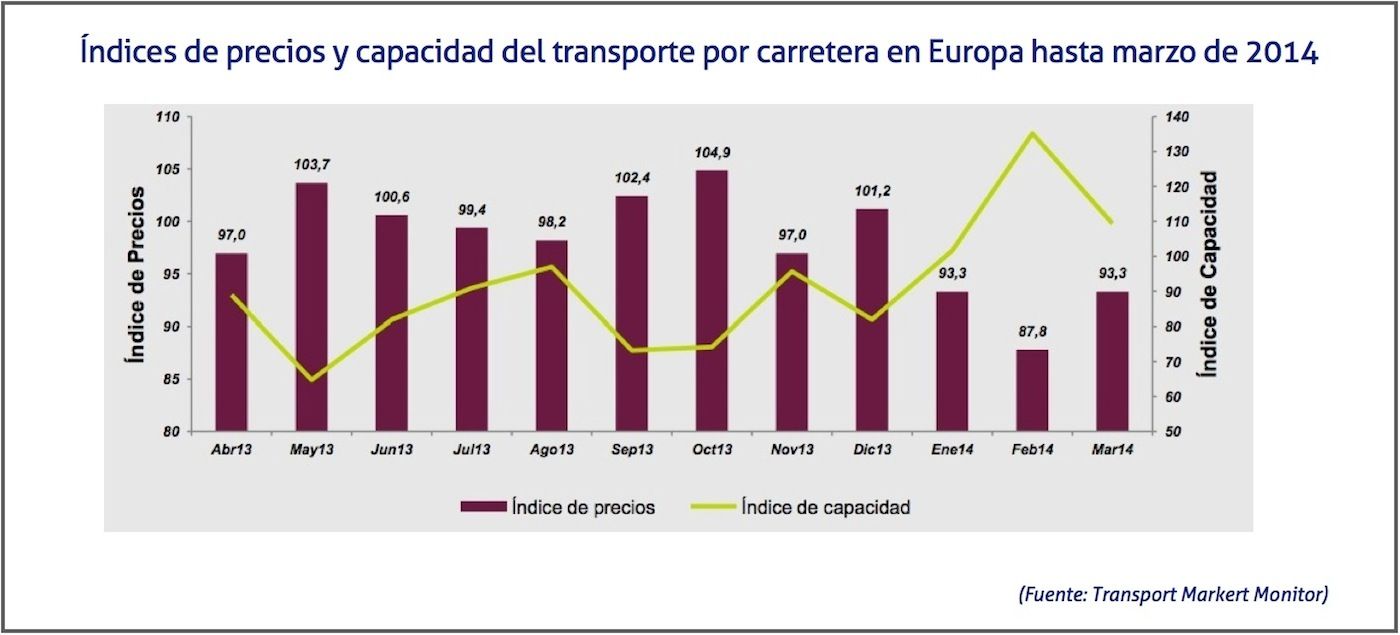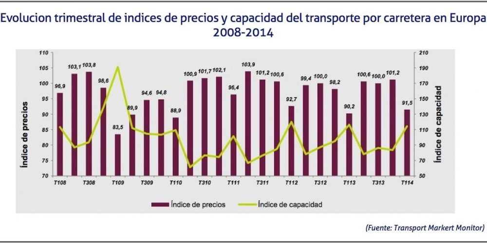 En esta decimonovena edición del “Transport Market Monitor”, elaborado por Capgemini Consulting con la colaboración de Transporeon, se recoge un descenso del 9,6%, es decir, un índice de 91,5, en el precio del transporte durante el primer trimestre de 2014, en comparación con el trimestre anterior, aunque con respecto al cuarto trimestre de 2013, esta cifra se sitúa en un 1,4% más.
