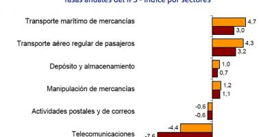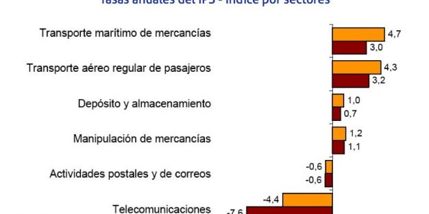 Esta misma disminución tiene el sector de depósito y almacenamiento mientras que la manipulación de mercancías sufre un descenso en sus precios del 0,2% y las actividades postales y de correos del -1,3%. Por el contrario, entre las actividades cuyos precios han aumentado este trimestre respecto al anterior destacan el Transporte aéreo regular de pasajero, con un 2,4%.