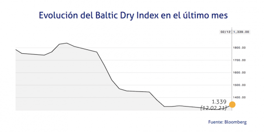 El Baltic Dry Index, BDI, que refleja los precios de los fletes de los buques graneleros tomando como referencia un total de 23 rutas marítimas, se ha situado el 12 de febrero de 2021 en los 1.339 puntos, lo que supone un incremento de 26 puntos o del 1,98% a lo largo de la jornada.