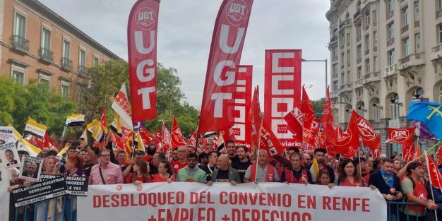 Cerca de 1.500 trabajadores de Renfe de toda España se han concentrado frente al Congreso de los Diputados para solicitar el desbloqueo del III Convenio Colectivo.