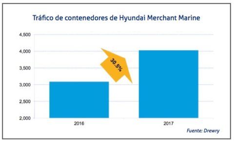Por ello, Hyundai Merchant Marine sigue trabajando para hacer crecer su negocio, cuyos volúmenes se han incrementado un 30% en 2017, impulsados por la llegada de antiguos clientes de la naviera china.