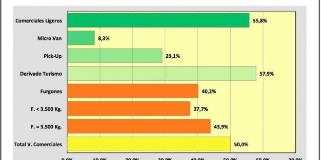 Las matriculaciones de derivados de turismo han crecido un 55,8%, el de las pick-ups, un 73,8% y el de los furgones menores de 3.500 kgs, un 36,2%.