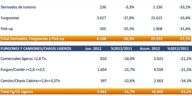 Las matriculaciones de vehículos comerciales ligeros descienden en el mes de junio, con una caída del 31,0% y algo más de 7.000 matriculaciones. En el acumulado, los volúmenes siguen siendo muy bajos con 42.196 unidades y un descenso del 25,6%.