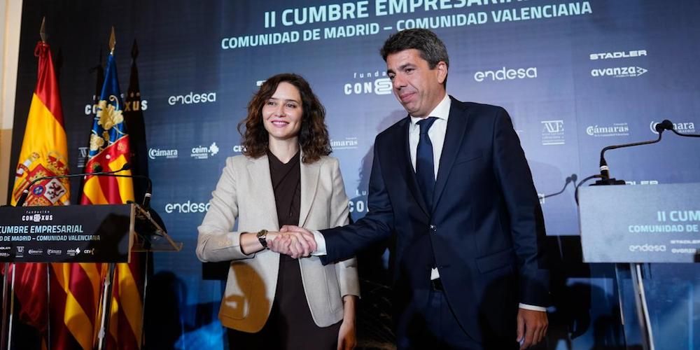 La presidenta de la Comunidad de Madrid, Isabel Díaz Ayuso, ha participado junto al presidente de la Generalitat Valenciana, Carlos Mazón, en la II Cumbre Empresarial entre las dos autonomías, organizada por la Fundación Conexus.