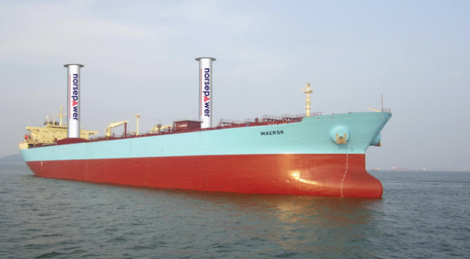 La compañía finlandesa Norsepower y la naviera Maersk están desarrollando conjuntamente un proyecto para probar un nuevo sistema de propulsión eólica en los buques de carga.
