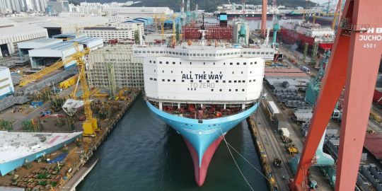 Maersk está a punto de botar el primero de sus grandes portacontenedores equipados para utilizar metanol como combustible de los 18 de este tipo que tiene actualmente encargados.