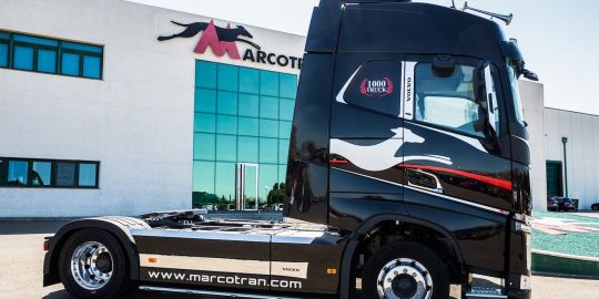 La empresa de transporte Marcotran ha iniciado este año una ambiciosa operación de renovación y ampliación de flota, que se compone principalmente de camiones Mercedes y Volvo, siendo uno de estos últimos el vehículo