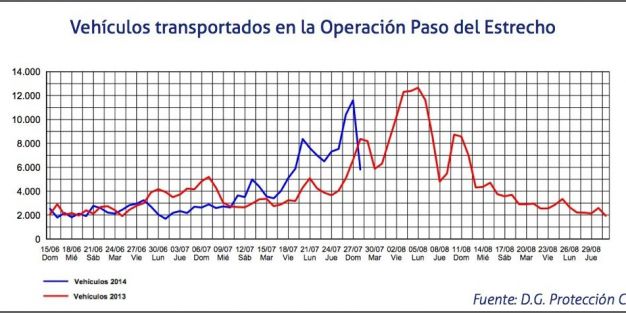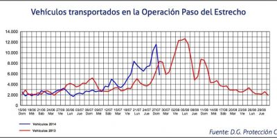 Concretamente, en la OPE 2014, entre el inicio de la OPE 2014 el pasado 15 de junio y el domingo 27 de julio, las líneas de Algeciras han transportado un total de 385.935 pasajeros y 104.539 vehículos, experimentando crecimientos en el número de viajeros del 11,6% y del 23,7% en las líneas con Ceuta y Tánger, respectivamente.