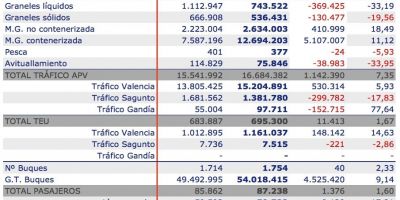 Además, el número de contenedores, con un total de 1.169.236 TEU manipulados, crecen un 14,54% y alcanzan un máximo histórico en términos interanuales.