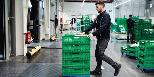 Así mismo, la cadena valenciana dispone en su instalación sevillana de treinta vehículos tritemperatura que pueden transportar hasta quince pedidos.