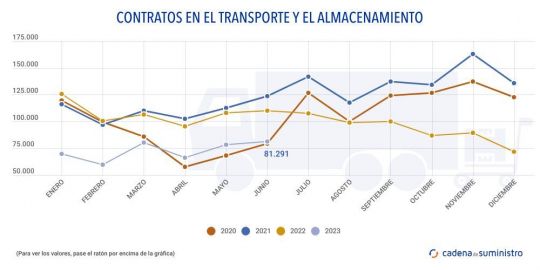Así pues, durante el pasado mes de junio se han registrado 81.291 contratos de trabajo nuevos en el sector del transporte y la logística, un 25,99% menos que en el mismo mes de 2022, así como un 4,2% más que en mayo de este mismo año.