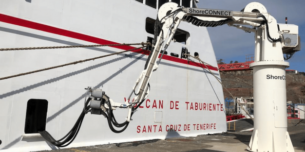 El ferry Volcán de Taburiente, de Naviera Armas, ha sido el primer barco en utilizar la conexión eléctrica tierra-barco en el puerto de San Sebastián de La Gomera, lo que técnicamente se conoce como 'cold ironing'.
