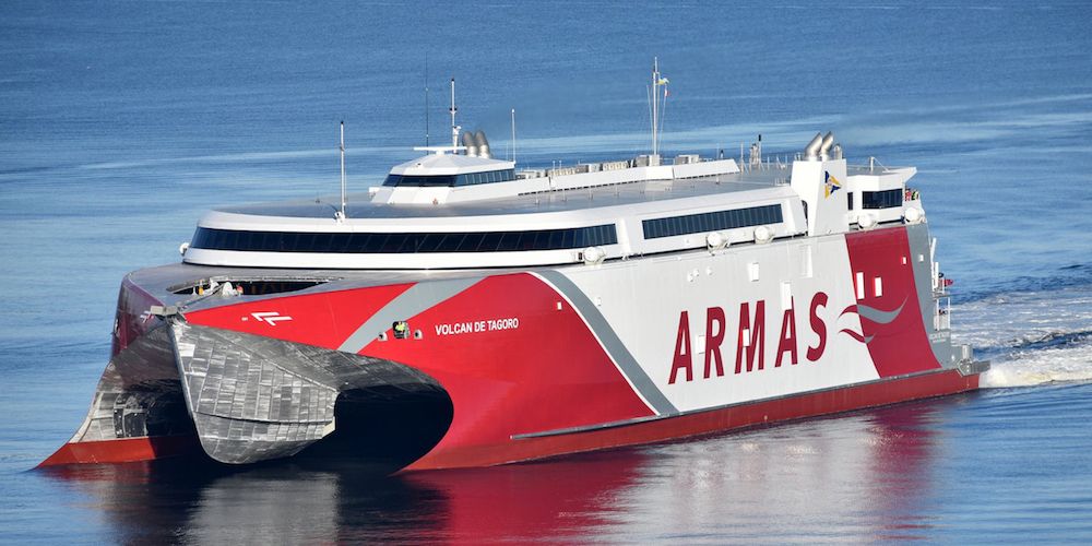 Para realizar este 'puente marítimo', Naviera Armas emplea dos catamaranes de alta velocidad, tales como son Volcán de Tagoro, considerado como el "más moderno" en su clase de la Marina mercante española, con 111 metros de eslora y capacidad para 1.184 pasajeros, de ellos 155 en clase business y 16 tripulantes, así como un garaje en dos cubiertas para 215 coches y 595 metros lineales para carga rodada.