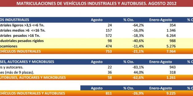 Las matriculaciones de vehículos industriales han descendido en el mes de agosto, con una caída del 26,9% y algo más de 800 matriculaciones, a pesar del anuncio de subida del IVA previsto para septiembre.