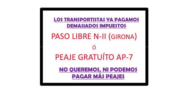 La campaña de protesta contra la prohibición de la Generalitat de Cataluña a la circulación de camiones por la N-II, llevará por lema "No queremos, ni podemos pagar más peajes"