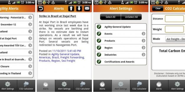 Es el caso de la nueva aplicación "Agility Logistics" que permite al usuario identificar los acontecimientos mundiales que puedan afectar el movimiento de su carga. El cliente puede personalizar su servicio de noticias para seguir los acontecimientos en algunos países o controlar los eventos que afectan a los modos específicos de transporte (aéreo, marítimo y por carretera).