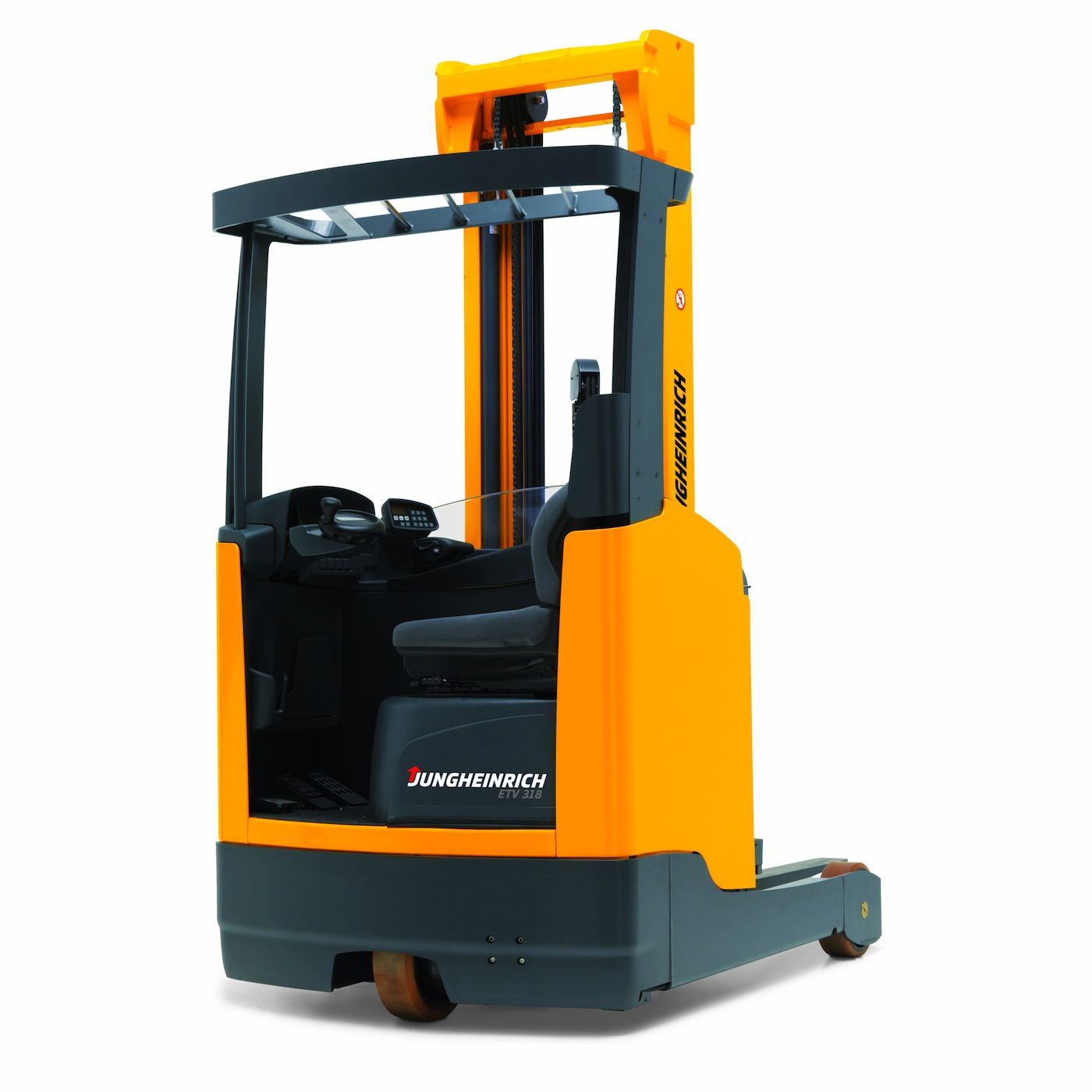 Con una capacidad de elevación de más de 1.800 kg, una de las características más importantes de la nueva carretilla retráctil de Jungheinrich, es su altura máxima de elevación hasta 11,5 m, para una altura del muelle de apilado de 11,3 m, con una capacidad de carga residual de 1.000 kg.