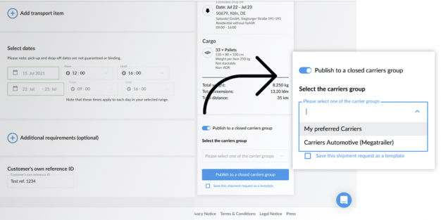 Antes de publicar su petición en la plataforma de carga, pueden elegir si enviarla solamente a los operadores incluidos en un determinado grupo cerrado, para que puedan presentar su oferta.