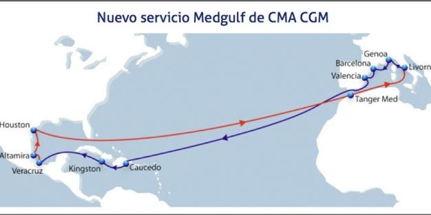 CMA CGM ha lanzado un nuevo servicio, que ha denominado 'Medgulf', que unirá los puertos del Mediterráneo con Estados Unidos, el Golfo de México y y El Caribe, y que se iniciará el próximo 24 de abril en Livorno.