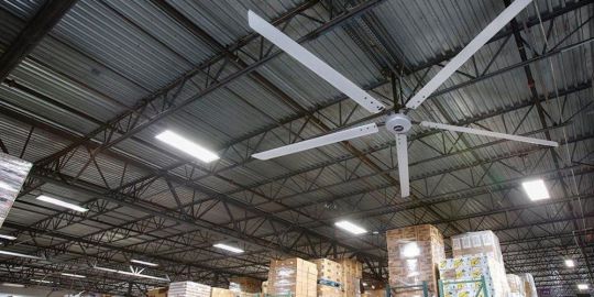 Está disponible en dos tamaños, incluyendo modelos de seis y algo más de siete metros de diámetro, está indicado en cualquier instalación que necesite un mayor movimiento del aire en espacios grandes, como almacenes, centros de fabricación, transporte o áreas de muelles y puertas.