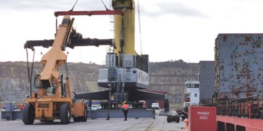 El puerto exterior de La Coruña ha acogido una nueva operativa singular de carga de estructuras metálicas especiales con destino a la construcción de un puente en Rumanía.